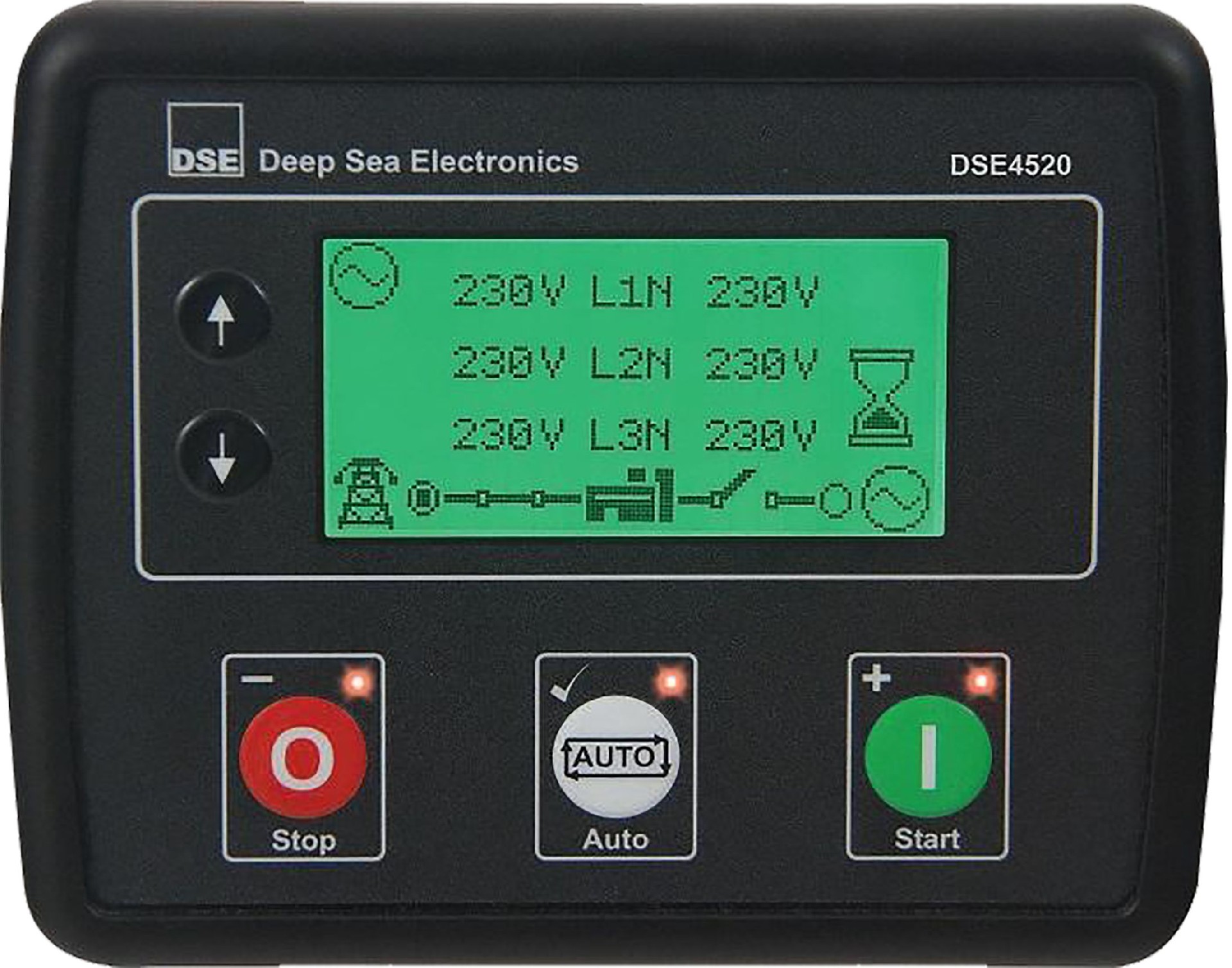 DSE4520 是一款緊湊型遠程啟動或自動電源故障控制模塊,其開發目的是在緊湊的外殼內提供一系列出色的功能。該模塊可監測各種參數,為發動機和交流發電機提供全面的保護。這將通過一系列警告、電氣跳閘和停機警報在大型背光 LCD 圖標顯示屏上進行指示。